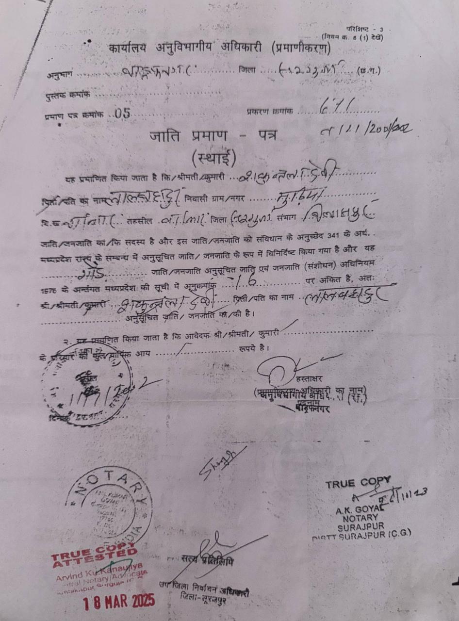 आरोप बेहद गंभीर — फर्जी जाति प्रमाण पत्र।