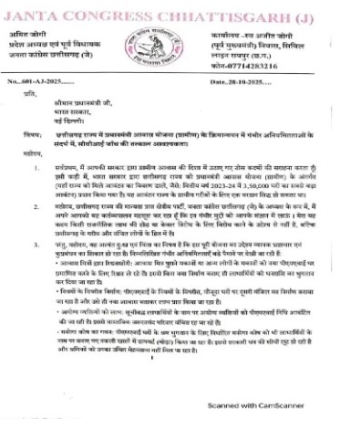 अपने पत्र में अमित जोगी ने कहा है कि केंद्र सरकार ने वर्ष 2023-24 में छत्तीसगढ़ को प्रधानमंत्री आवास योजना के तहत ग्रामीण आवासों का सबसे बड़ा आवंटन दिया था, लेकिन भ्रष्टाचार और अनियमितताओं के कारण योजना का लाभ गरीबों तक नहीं पहुंच पा रहा है। उन्होंने आरोप लगाया कि राज्य में आवास मित्र और कुछ अधिकारी रिश्वत लेकर पुराने घरों को नया पीएमएवाई घर दिखा रहे हैं। कई जगहों पर पुराने मकानों की दूसरी मंजिल बनवाकर उसे नए आवास के रूप में प्रस्तुत किया जा रहा है, जो पूरी तरह अवैध है।