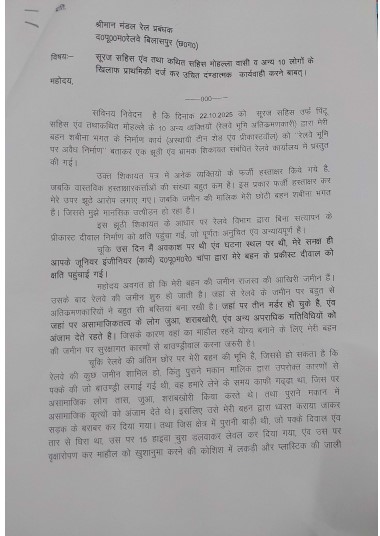 स्थानीय नागरिकों का कहना है कि इस पूरे प्रकरण में सच्चाई सामने लाने के लिए रेलवे प्रशासन को निष्पक्ष जांच करनी चाहिए। बिना तथ्यों की पुष्टि किए किसी पर कार्रवाई करना न केवल प्रशासनिक असंतुलन पैदा करता है, बल्कि निर्दोष व्यक्ति के अधिकारों का भी उल्लंघन है। अब देखना यह होगा कि रेलवे प्रशासन निष्पक्ष जांच कर सच्चाई को उजागर करता है या फिर यह विवाद भी अन्य अतिक्रमण मामलों की तरह फाइलों में ही दफन हो जाएगा।