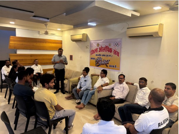 ,इस अवसर पर जिला ओलंपिक संघ के कार्यकारिणी अध्यक्ष अमर सुल्तानिया, अध्यक्ष हितेश यादव सचिव जितेंद्र तिवारी संयोजक गोपेश्वर कहरा, संयुक्त सचिव वरुण पाण्डेय सहित क्रीड़ा भारती के अध्यक्ष राजीव ठाकुर, नेटबॉल संघ के राजेश राठौर हाँकी संघ के राकेश गढेवाल,कराते संघ के वरुण पाण्डेय,शिक्षा विभाग के जिला खेल अधिकारी प्रेमलाल पाण्डेय, खेल एवं युवा कल्याण विभाग के एस एस बघेल,फेंसिंग तलवारबाजी संघ के रूखमणी रानू, मधु विश्वकर्मा, हैंडबॉल संघ के नरेंद्र राठौर, फुटबॉल संघ के अमितेश राठौर,रमेश सोनवानी, शनतरंज संघ के देवेंद्र यादव,हैंडबॉल संघ के गौरव कटकवार, गौरव साहू, बॉलीबाल संघ के भीम प्रसाद श्रीवास, रग्बी संघ के चंद्रशेखर महतो सहित विभिन्न खेल संघो के पदाधिकारी उपस्थित रहे,बैठक में प्रतिभागियों के लिए स्वल्पाहार, प्राथमिक चिकित्सा, सुरक्षा, पेयजल, पुरस्कार, प्रमाणपत्र,सहित गरिमापूर्ण आयोजन की व्यवस्था के सम्बंध में विस्तृत चर्चा एवं रूपरेखा तैयार किया गया बैठक को अमर सुल्तानिया, गोपेश्वर कहरा, हितेष यादव, जितेंद्र तिवारी, प्रेमलाल पाण्डेय,ने सम्बोधित किया बैठक का संचालन वरुण पाण्डेय ने किया